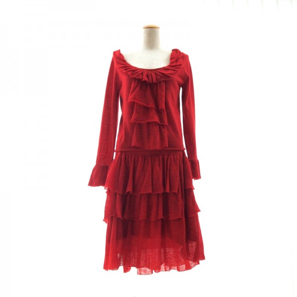 | 商品の特徴 | ズッカ ニットセットアップ 真っ赤なお色が印象的な素敵なニットセットアップです。トップはゆったり開いたUネックで、フロントにフリルが施されています。スカートは3段ティアードとなっており、華やかな印象を与えてくれます。ウエストゴムの履きやすい仕様です。セットアップとしてはもちろん、別々でもSTYLINGして頂けるお勧めのアイテムです。 ■ZUCCA デザイナー・小野塚秋良氏によって1988年に誕生したブランド。手間ひまかけた実用的なモノづくりにこだわり、アースカラーでナチュラル・テイストな作品が多い。イッセイ ミヤケグループ。 詳細 サイズ M 色 レッド 素材 毛100% 状態 スカートのウエストゴムが少し緩くなっています。そのほか未使用ですので、綺麗な状態です。